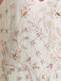 - نوع التطريز: تطريز يدوي ملون باللون الوردي والأبيض.