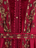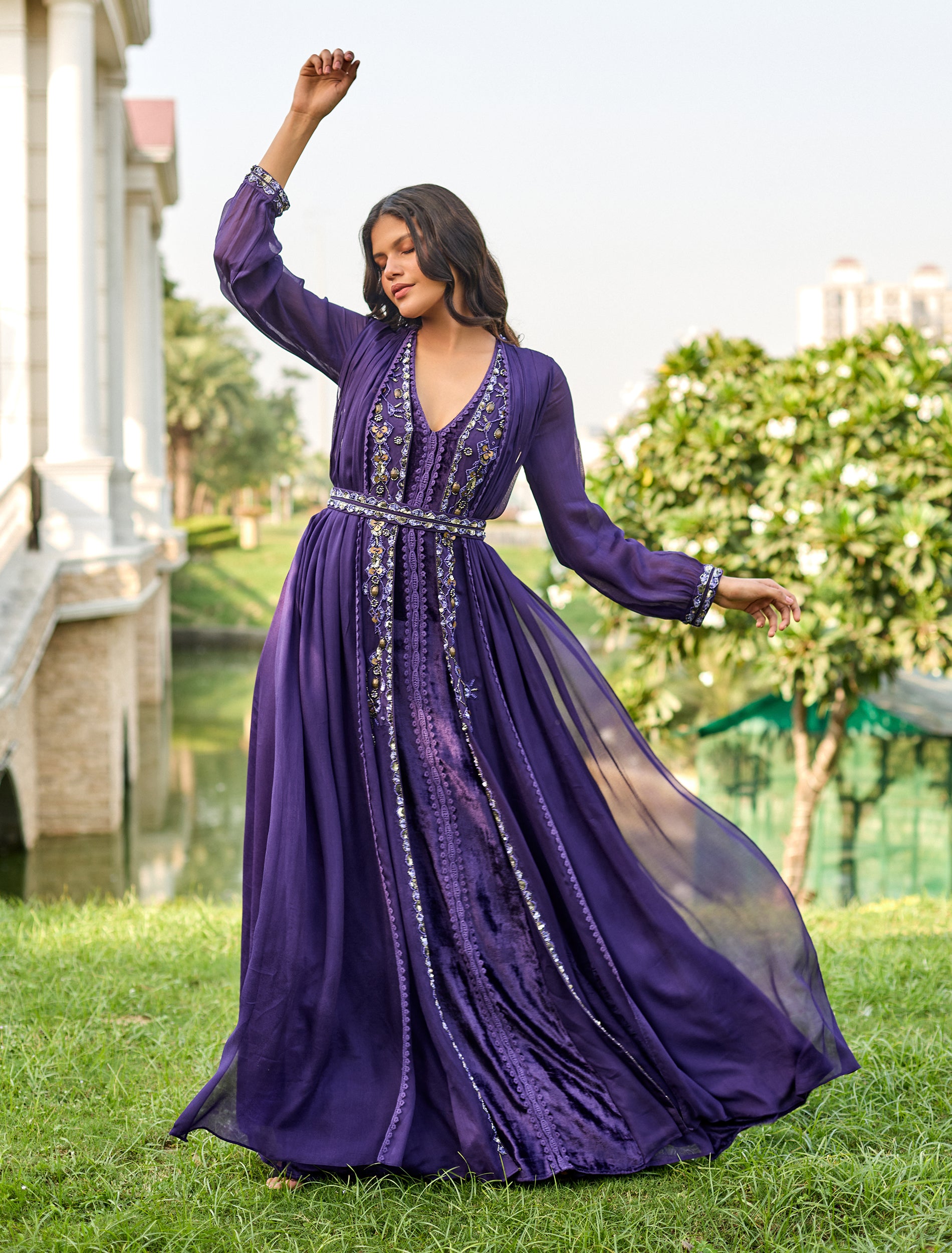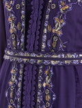 استمتعي بفستان سهرة محتشم بتصميم طويل بطول 60 إنش فاخر من المخمل والتٌل يجمع بين الرقي والأنوثة. فستان لون فوشي غامق بتطريز ذهبي طولي بقصة محتشمة مع حزام للخصر يمنحك انسيابية فاخرة من الأعلى للأسفل مع حزام يحدد الخصر بأسلوب راقٍ. ستايل سهرات هو خيار مثالي للسهرات والمناسبات الخاصة.