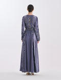 - نوع التطريز: تطريز يدوي بخيوط ذهبية ورمادية وفضية ونقاط خرز صغيرة.