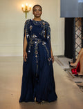 فستان سهرة لون كحلي مع أكمام كاب مفتوحة منسدلة