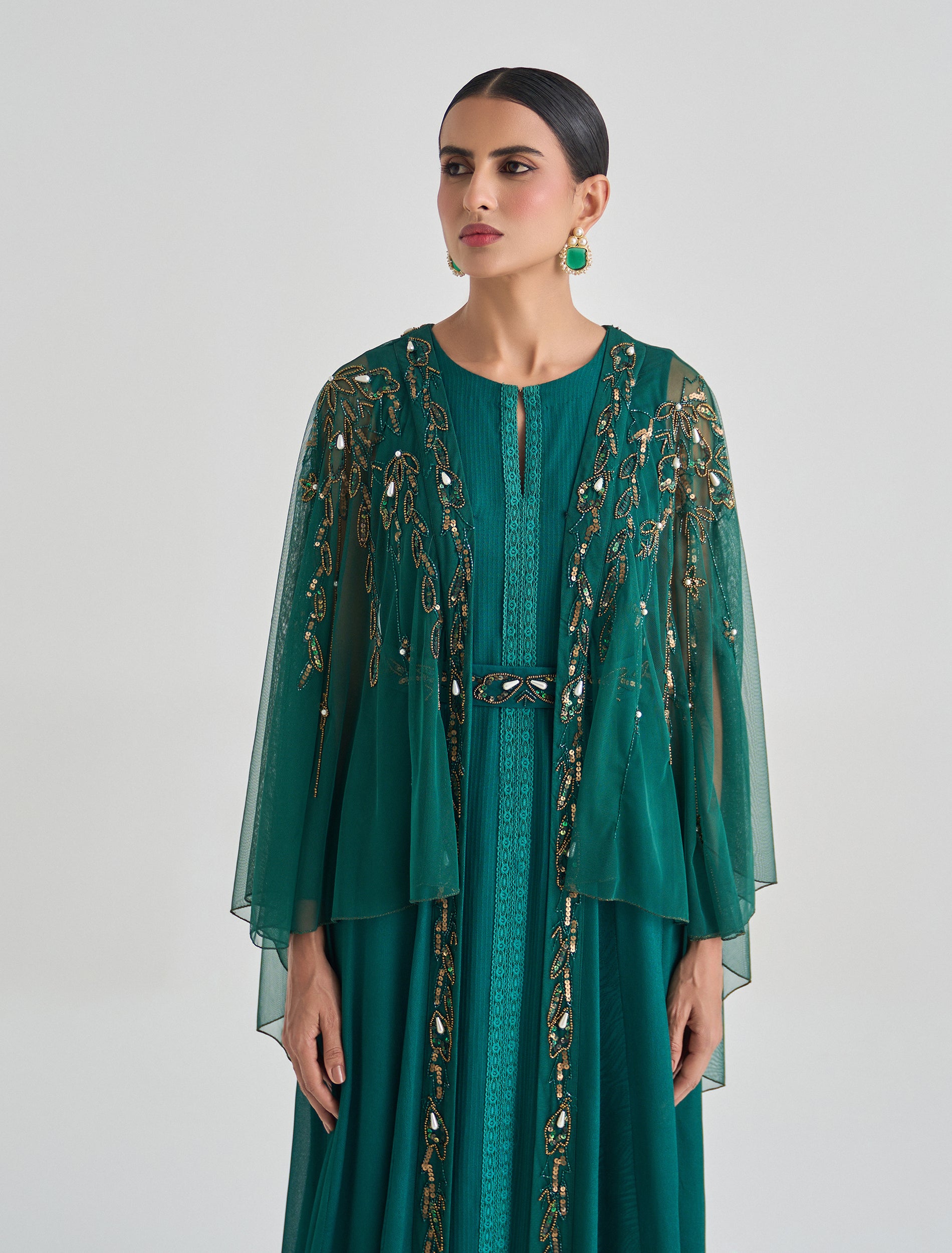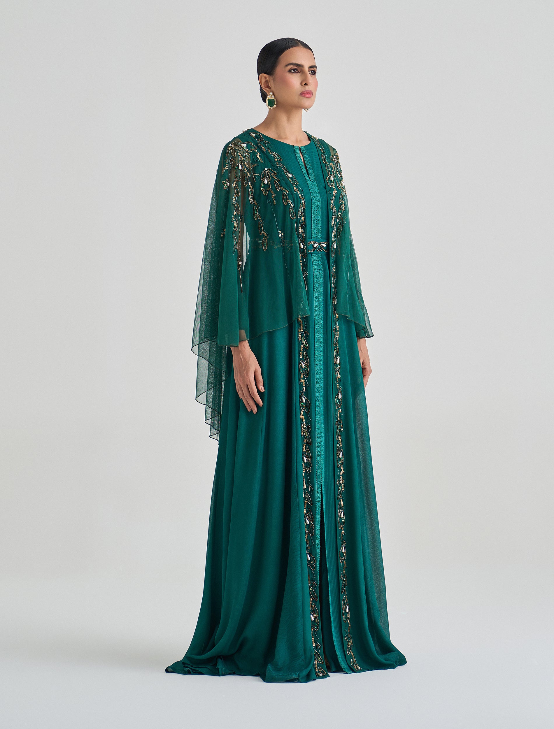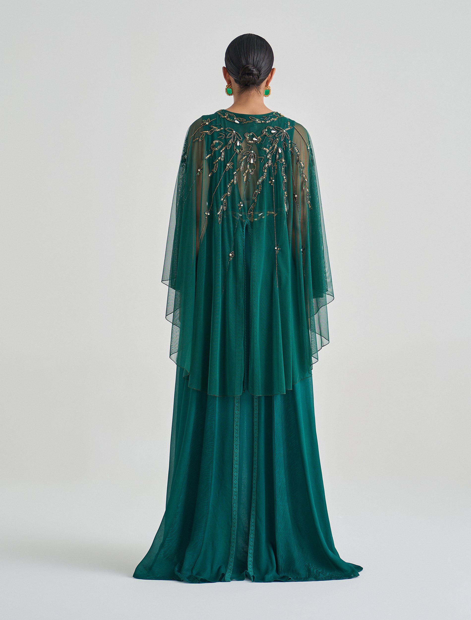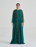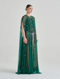 فستان سهرة أخضر بتطريز ذهبي مطرز يدويا