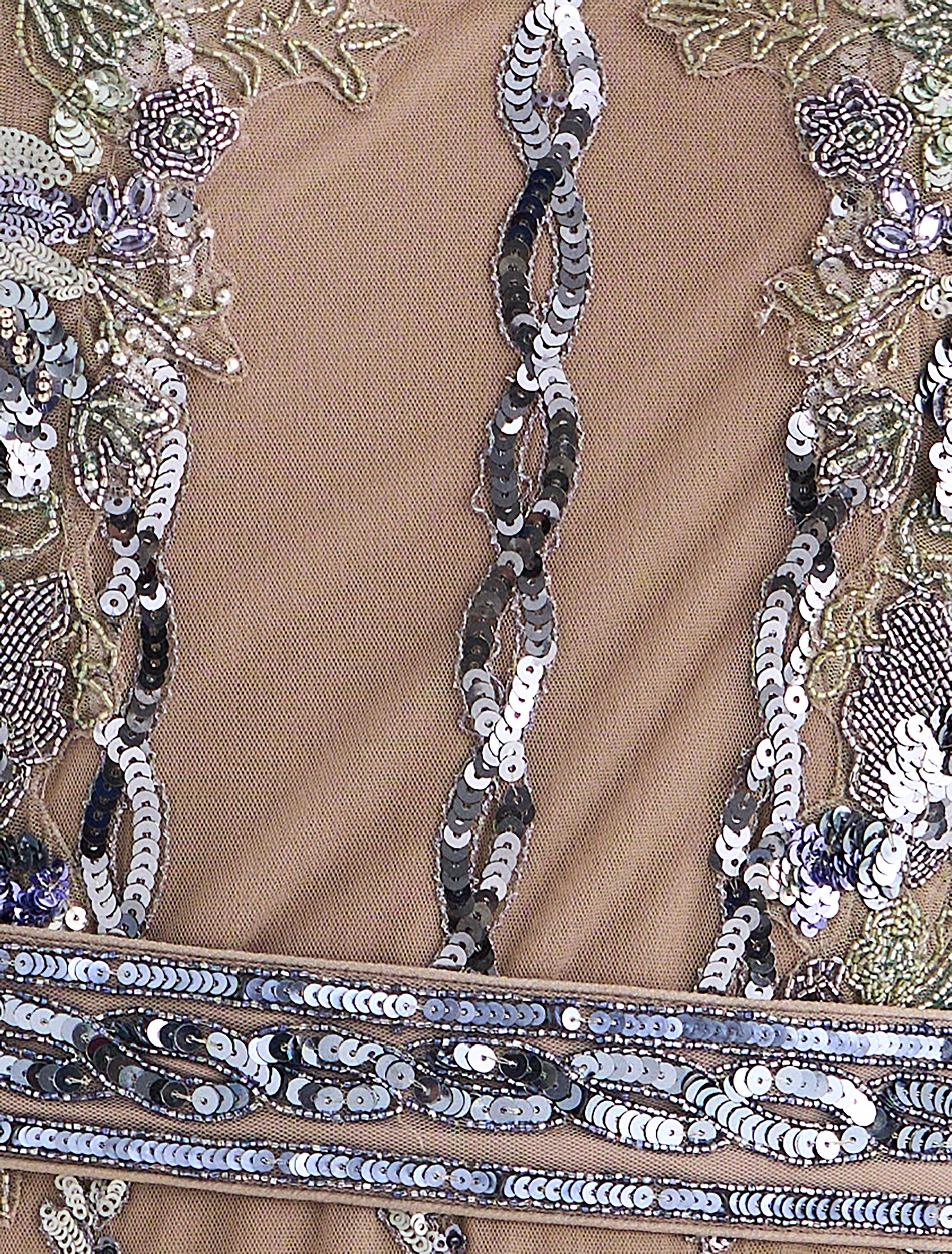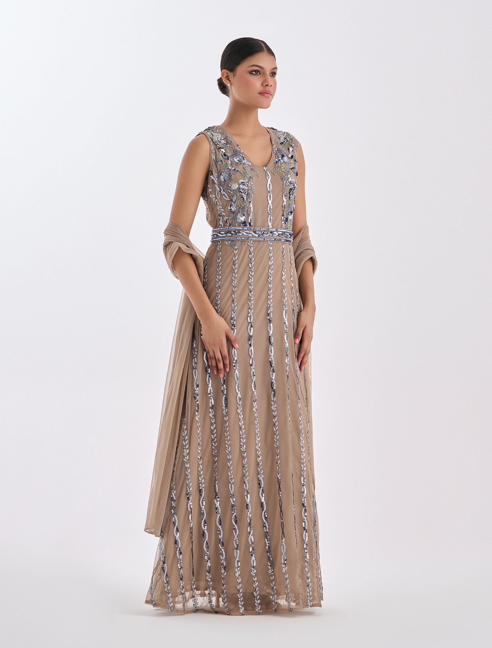 تطريز مميز من الأمام مع رقبة على شكل حرف V، مصمم للحفلات والمناسبات.