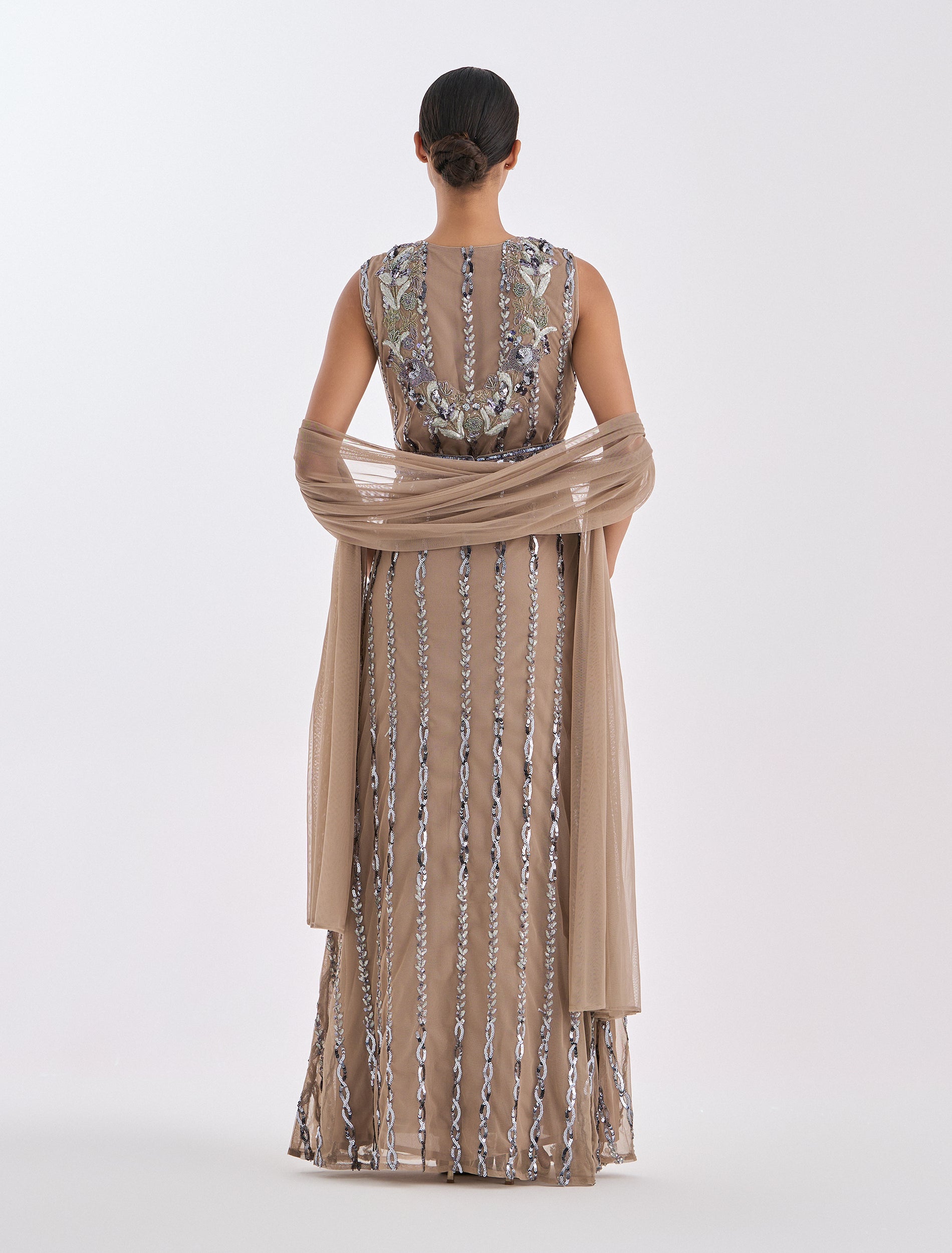 فستان سهرة مطرّز يدويا بترتر لامع
