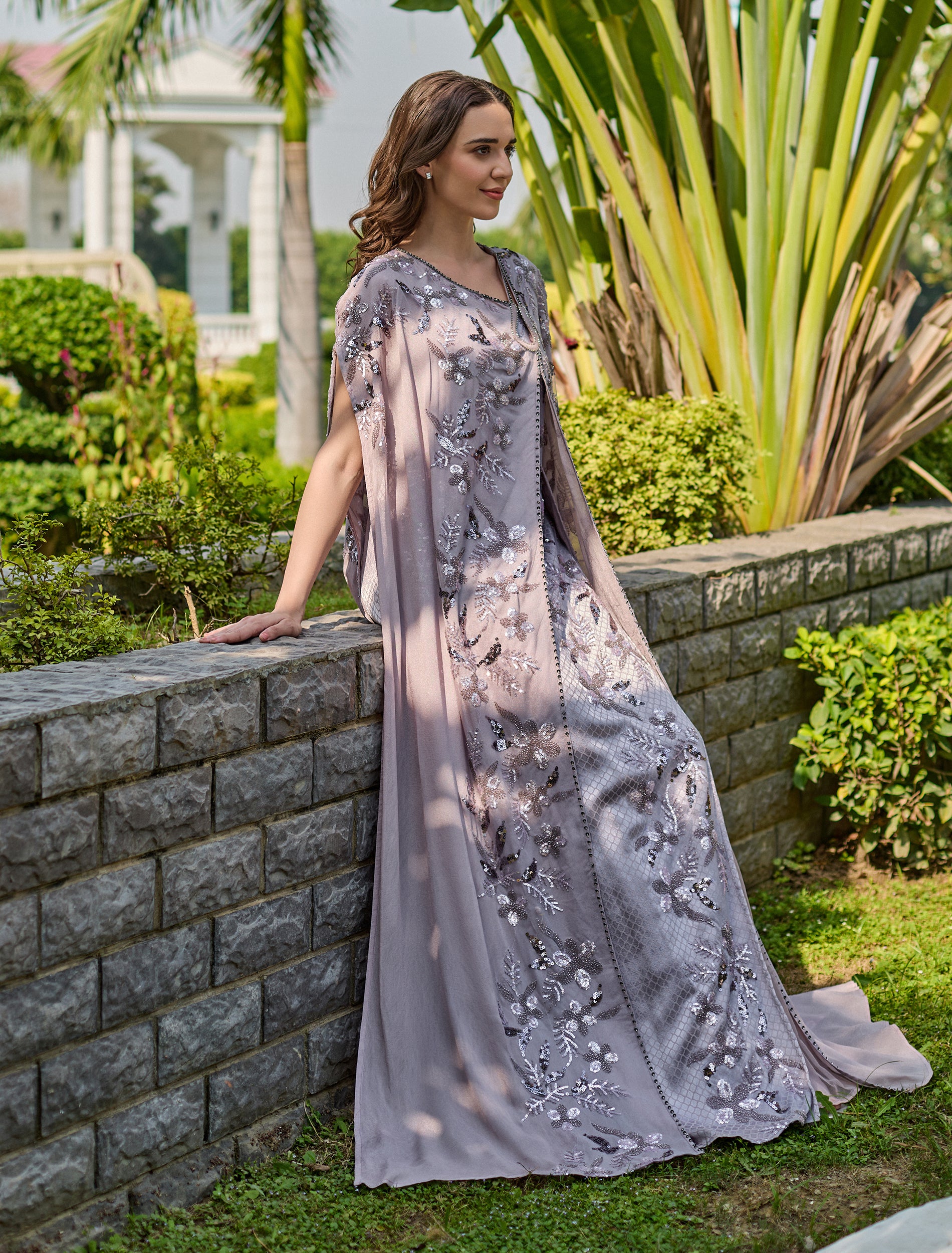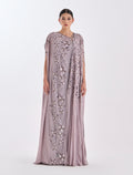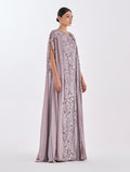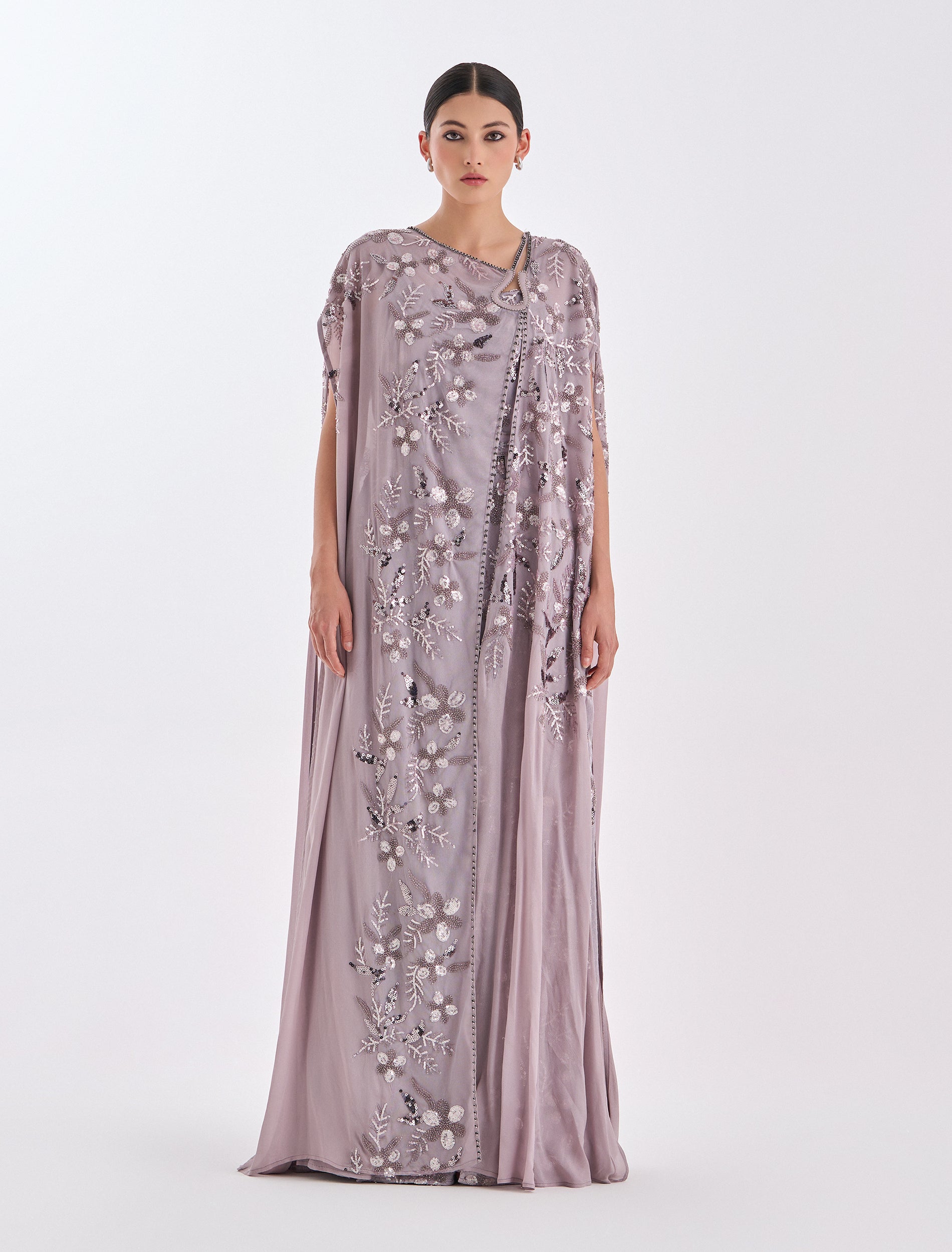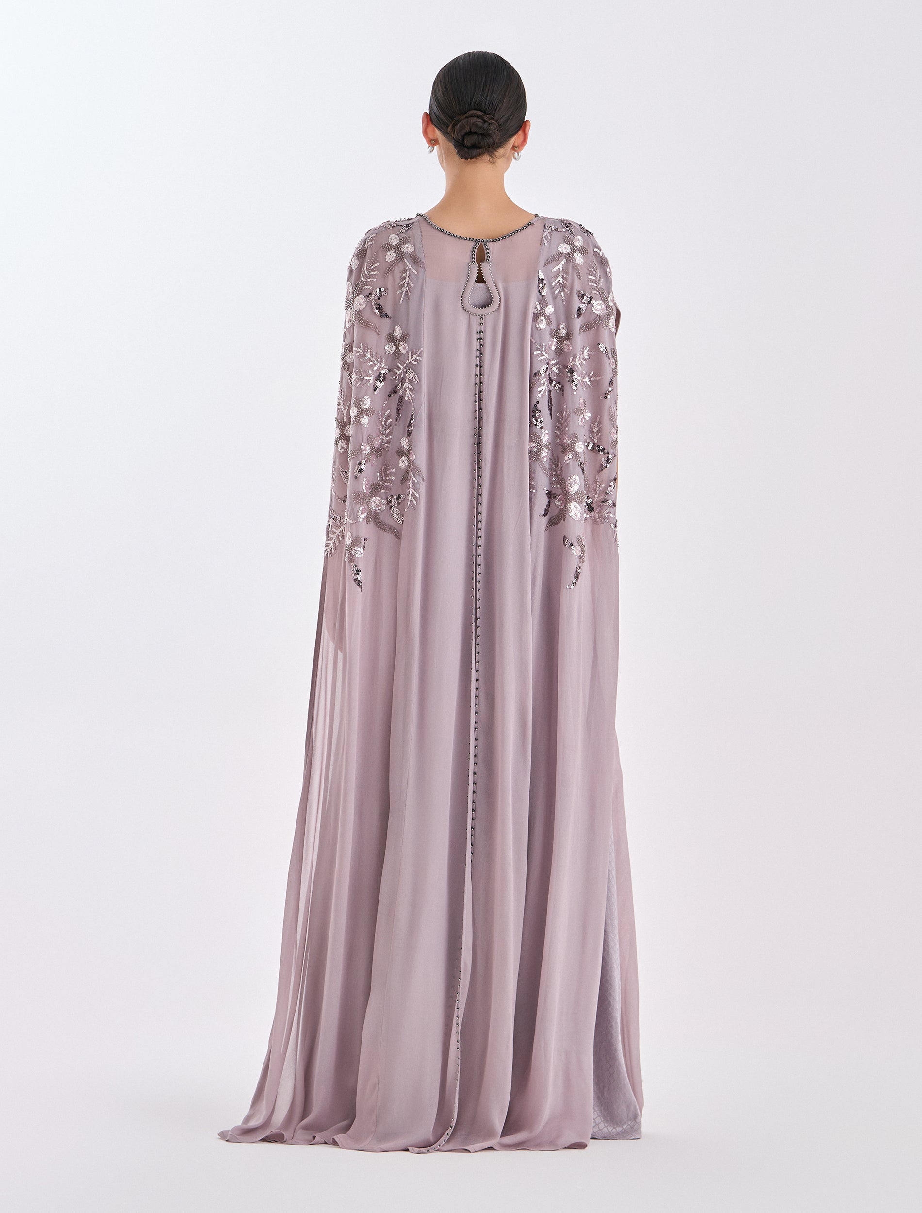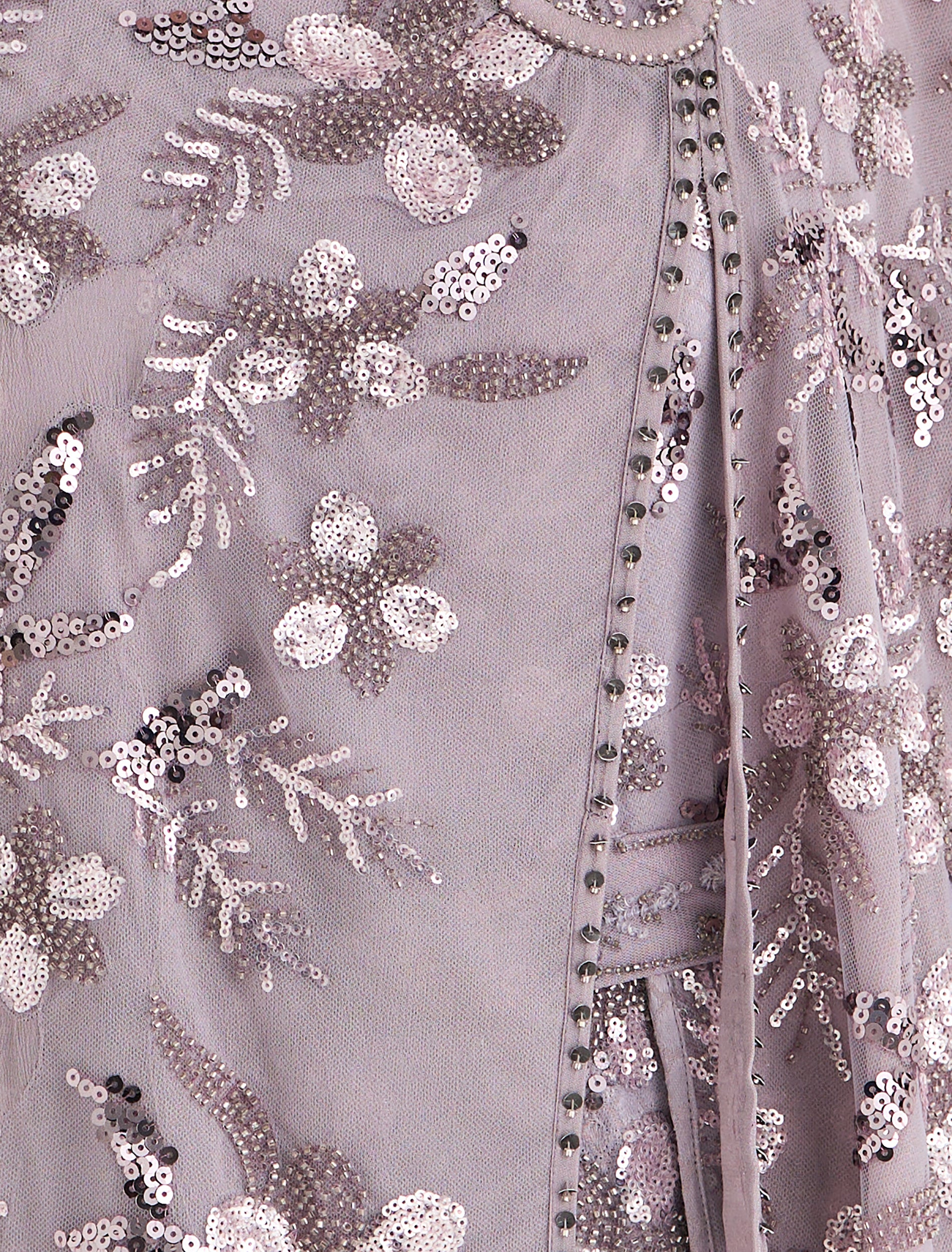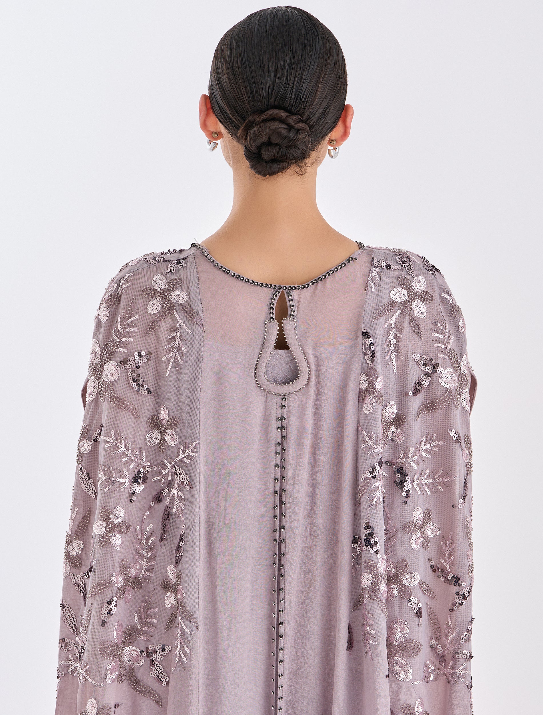 فستان طويل مطرّز يدويا بنقوش زهرية من الترتر