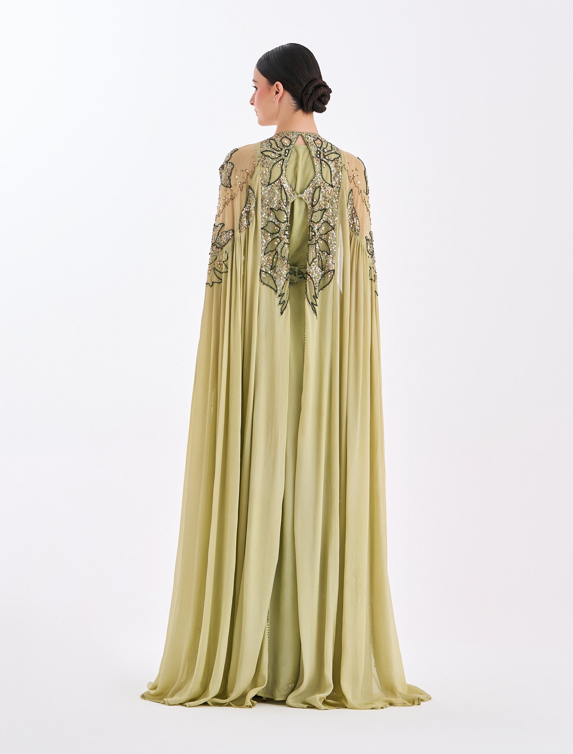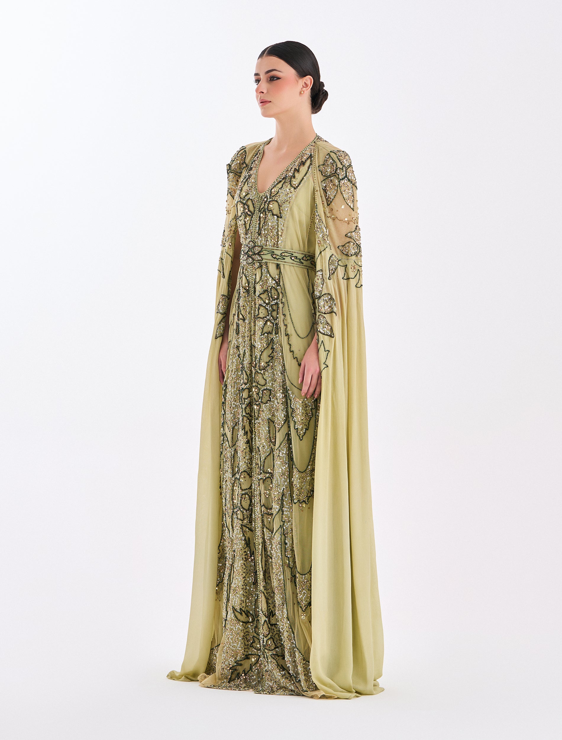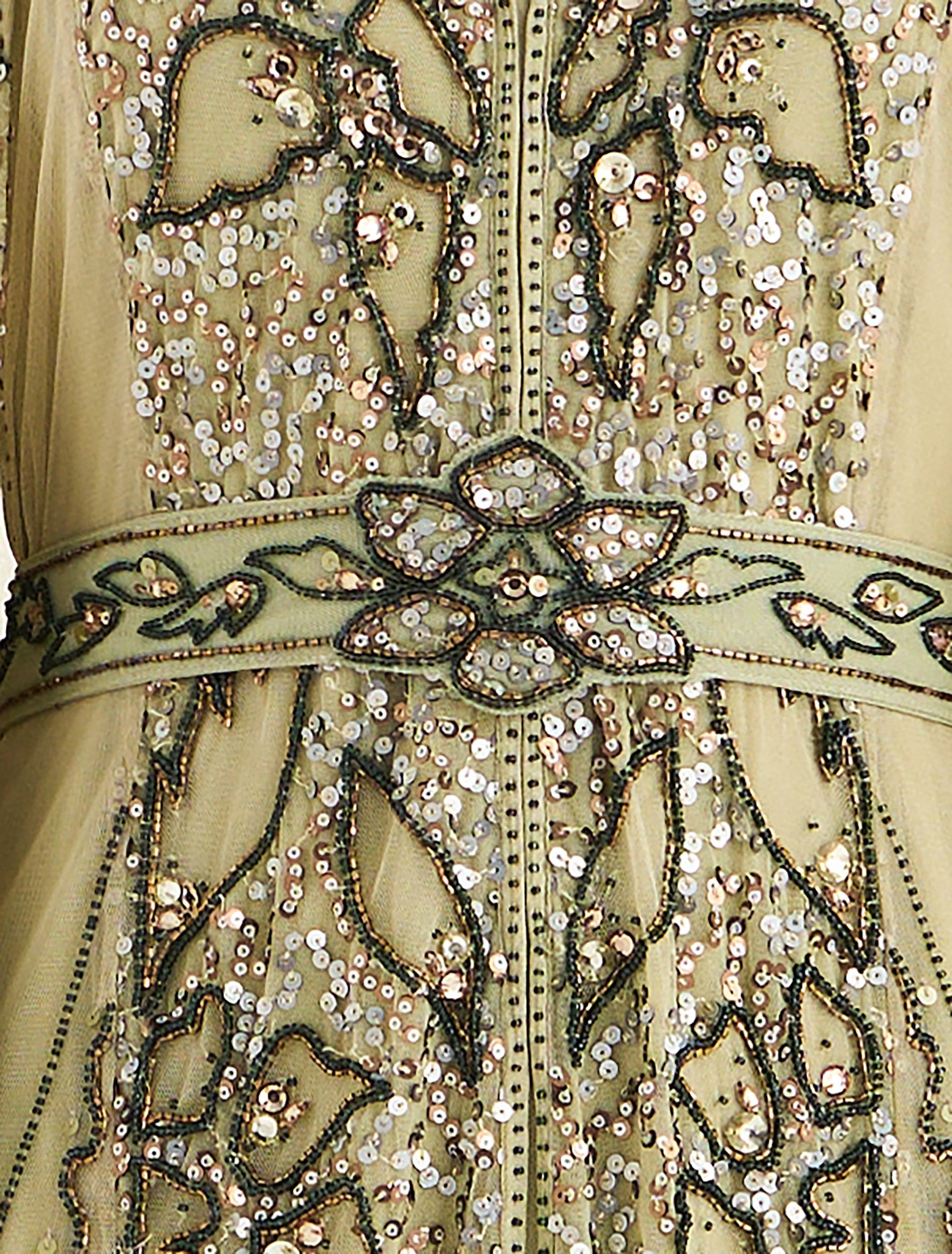 فستان سهره بتطريز انيق وأكمام منسدلة