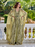 تطريز مميز من الأمام، وفتحة رقبة على شكل حرف V، مصمم للحفلات والمناسبات.