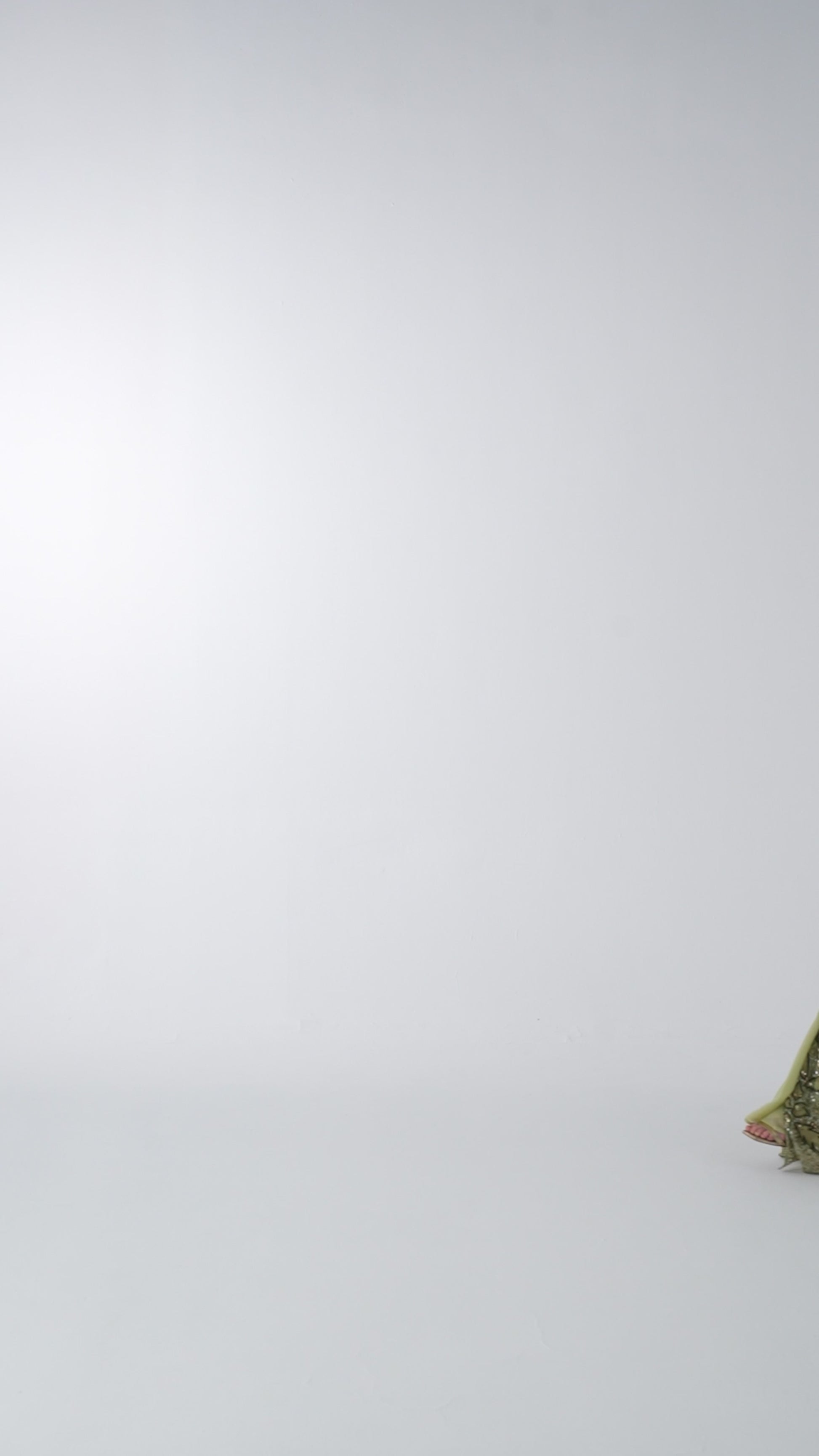 نسقيه مع مجوهرات ذهبية وصندل لامع لإطلالة فاخرة.