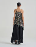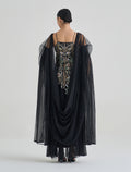فستان بحمالات رفيعة سهرة أسود فاخر بتطريز يدوي متعدد الألوان يمنحك أناقة لافتة في جميع المناسبات. تصميم فستان سهرة مع كاب خلفي يمكن ارتدائه أو إزالته بسهولة مما يمنح توازناً مثالياً مع انسابية الفستان. اختاري سواء احتجتي فستان حفلات أو فستان مناسبات راقي لإطلالة مسائية متكاملة تجمع بين الرقي والتفاصيل المتقنة